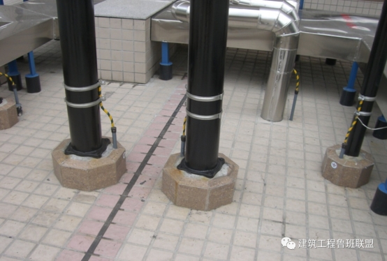 工艺说明:屋面金属管道必须接地可靠,不得直接焊接,必须采用接地卡环并采用铜芯软线与接地扁钢连接,且防松零件齐全。