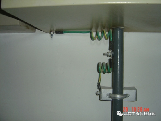 工艺说明:屋面外露的其他金属构件必须与避雷带连成一个整体的电气通路。各构件不得串接,必须单独与接地干线相连。