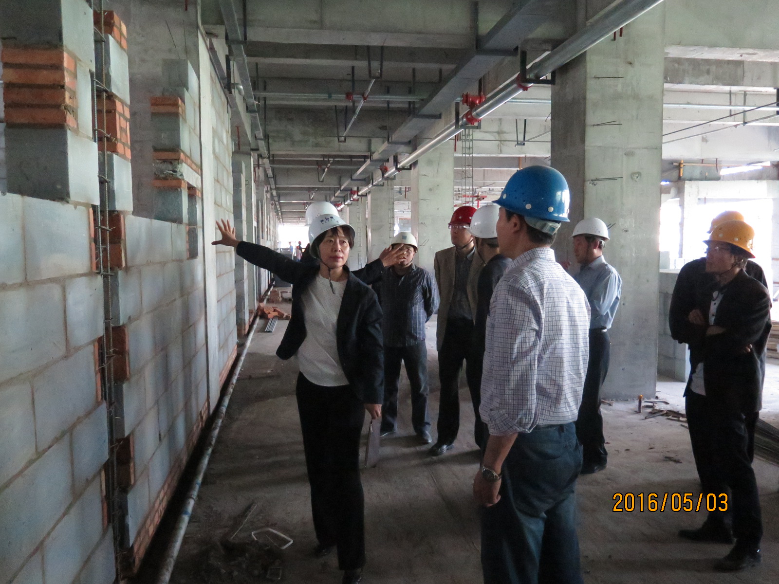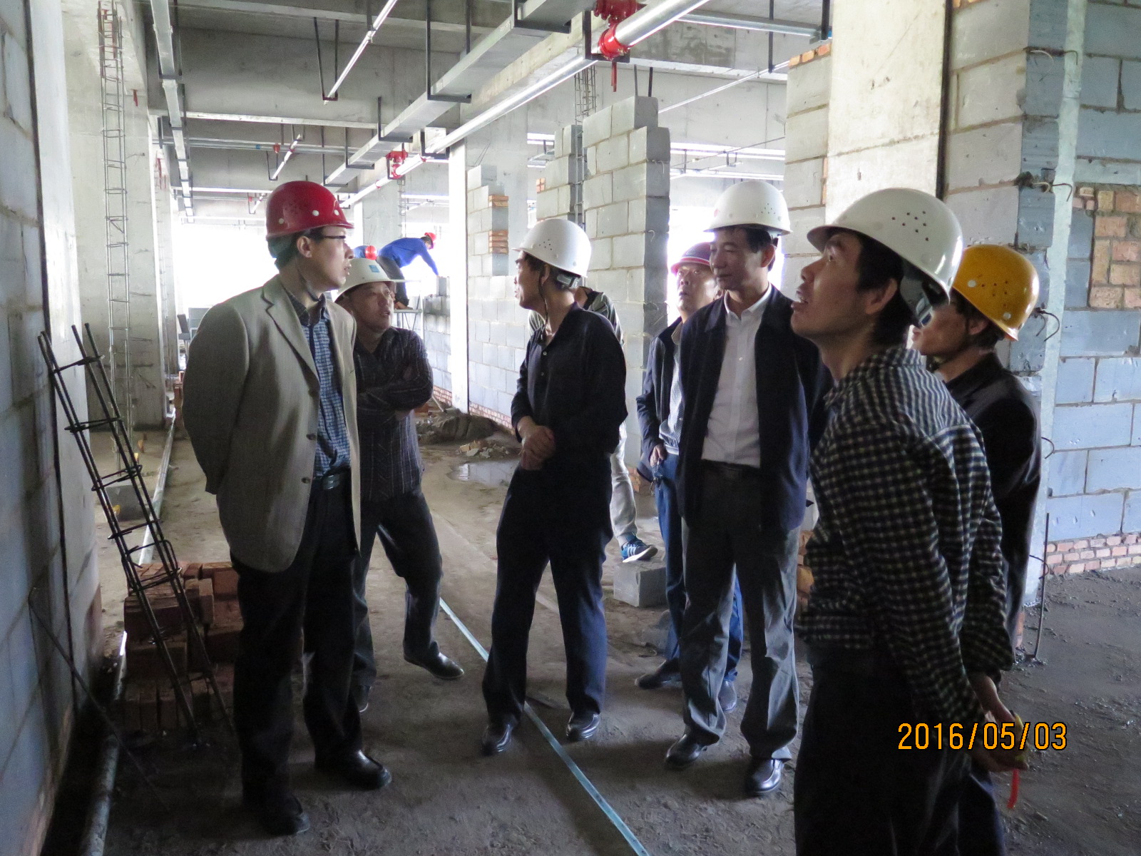 5月3日上午,学院党委书记崔岩,院长张晓云,副院长梅创社、杨卫军,纪委书记康强和副院级调研员赵嘉骏、王晓江一行实地检查精艺楼(工程技术训练中心)建设工地。
